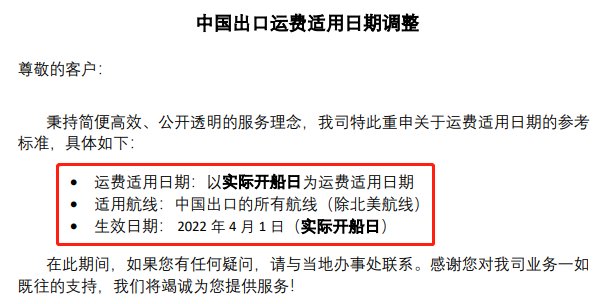 4月1开始执行!达飞海运费将以实际开船日为准!MSC增加误报费!