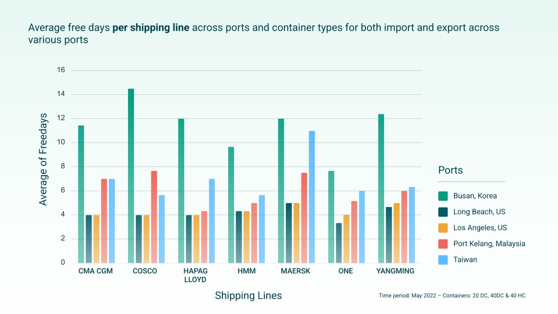 当然,只谈滞港/滞箱费不谈免费用箱期限就是耍流氓,免费时间越长,滞港/滞箱费也就相对更低。从船公司的体量来说,船队更小、设备更少的船公司的提供的免费用箱期可能更短,滞港/滞箱费可能也更高。每家船公司针对不同目的港的免费用箱期都不同,与各港口的平均滞港/滞箱费排名成反比,各目的港的平均免费用箱期限为7天,各大船公司在釜山港的平均免费用箱期最长,为11天,在长滩港与洛杉矶港的免费用箱期则短至4天。而且加州两港滞港费上升,滞箱费却下降了,显然这是因为加州两港太堵,船公司希望货主抓紧把箱子提/送出码头。鉴于欧美港口罢工之声不绝于耳,港口拥堵依然是产生滞港/滞箱费的重要因素,也是货主与船公司纠纷不断的来源,美国政府上月通过的《海运改革法 2022》中就明确要求,FMC(美国联邦海事委员会)需于7月底针对滞港/滞箱费出台详细规定。大货主也许可以用自己的箱子,免去滞箱费,或与船公司协商争取更长的免费期限,出货少的货主们除了精打细算,就只好向FMC投诉了。