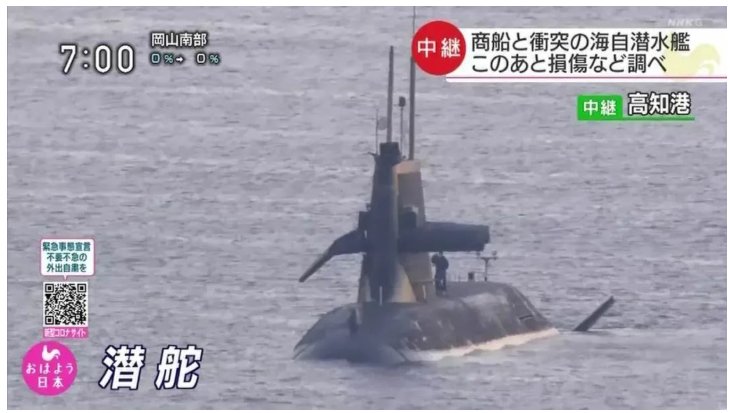 商船“鸿通”号长约229米,宽约38米,总吨为51208吨,载重吨93000吨。潜艇“苍龙”号长约84米,宽约9.1米,排水量约为2950吨。这也不难理解“鸿通”号向日本海上保安厅汇报时表示“并未感受到冲撞带来的振动,应该对船体没有损伤”。