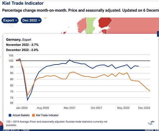 如前所述,基尔贸易指标中,德国11月出口下降3.7%,进口增长0.5%。